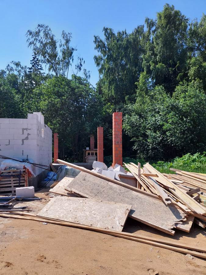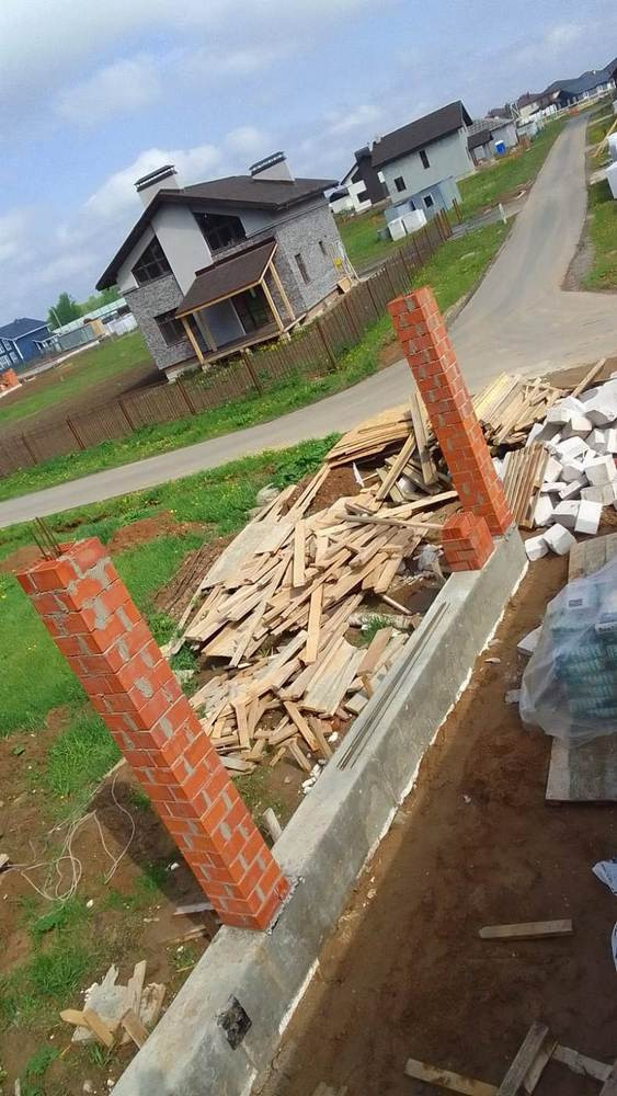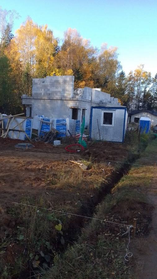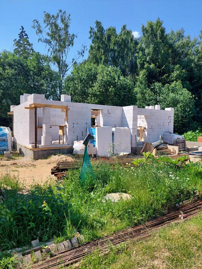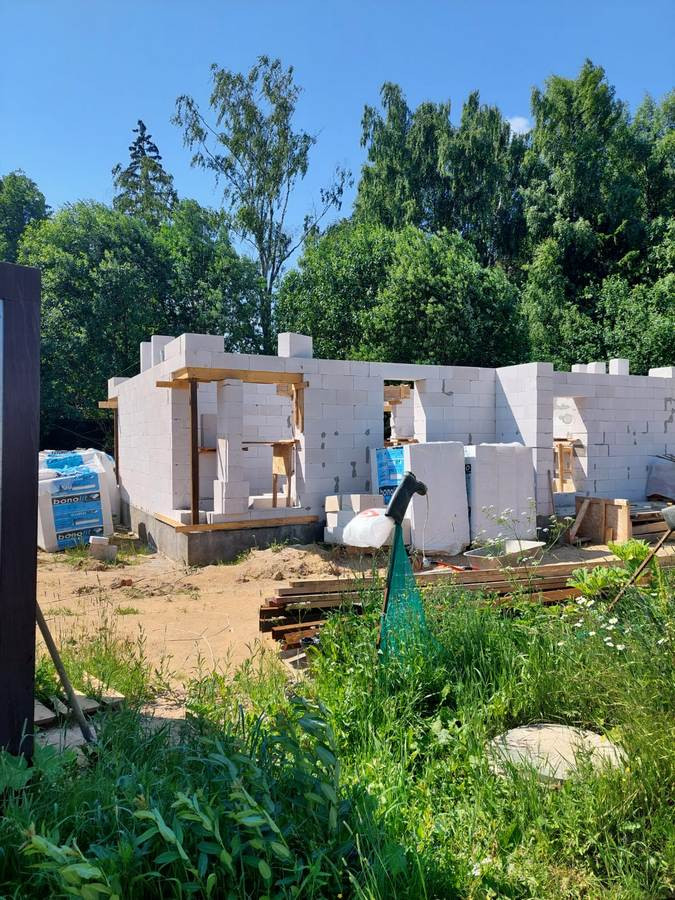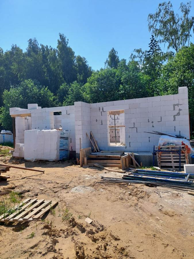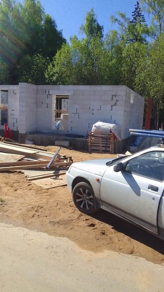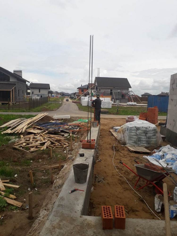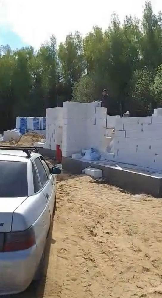 Выполняется строительство двухэтажного дома на 292 м2, строится по индивидуальному проекту. Фундамент по свайно-ростверковой технологии, стены из газобетонных блоков.
