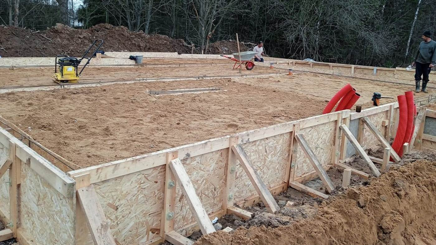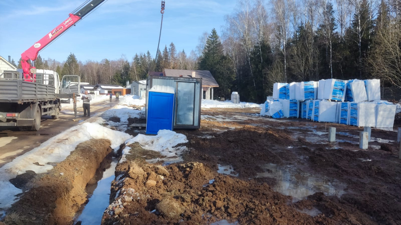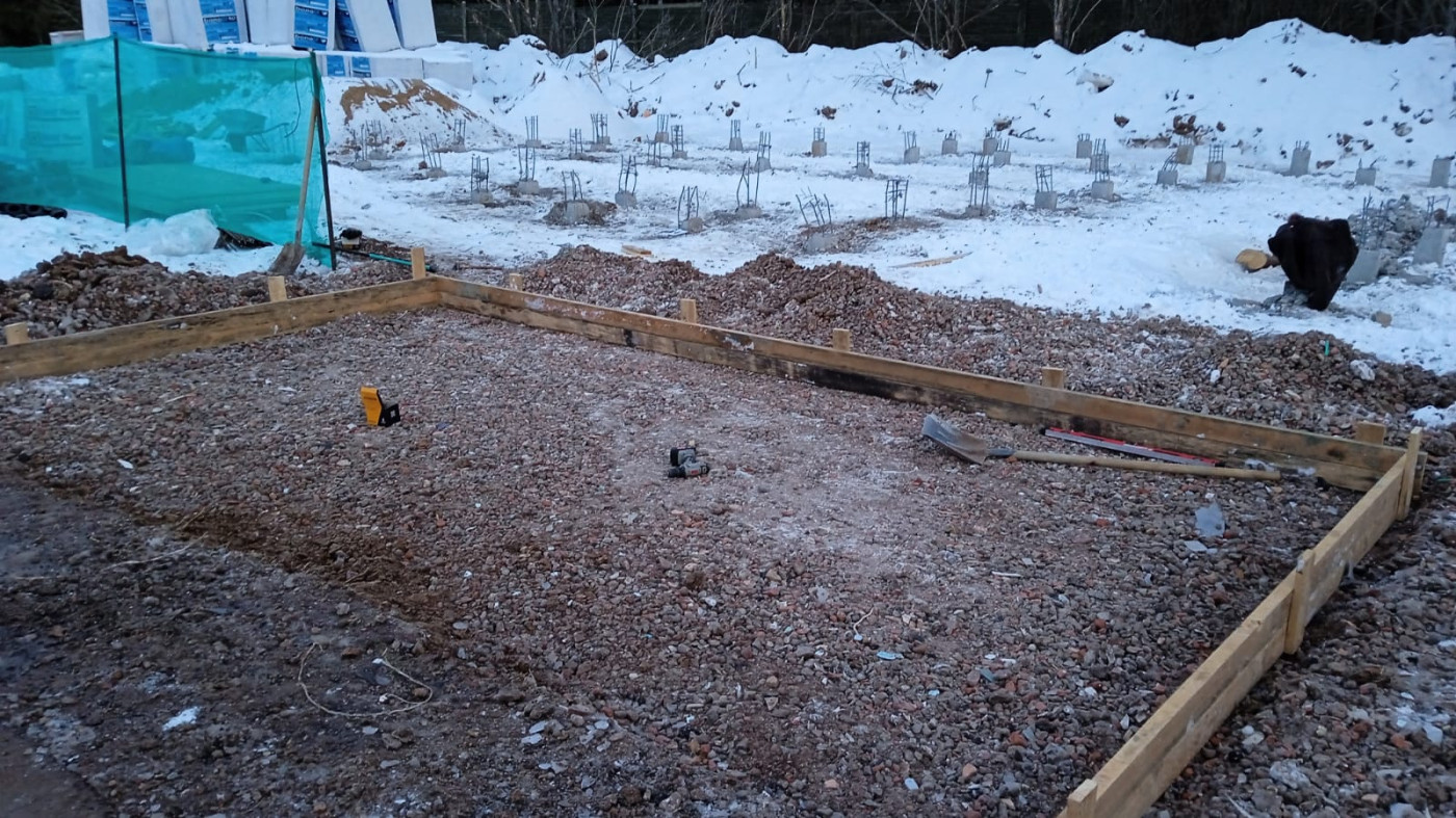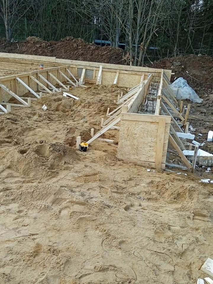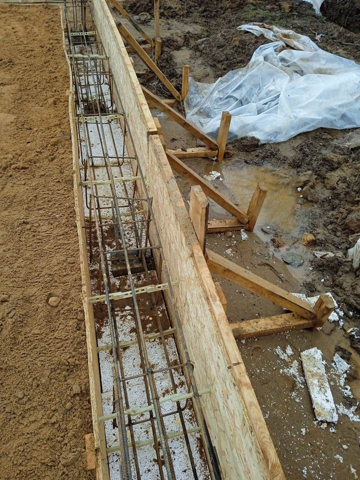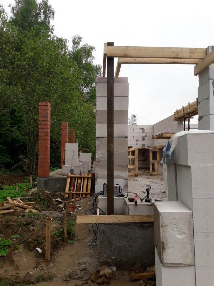 Выполняется строительство двухэтажного дома на 292 м2, строится по индивидуальному проекту. Фундамент по свайно-ростверковой технологии, стены из газобетонных блоков.
