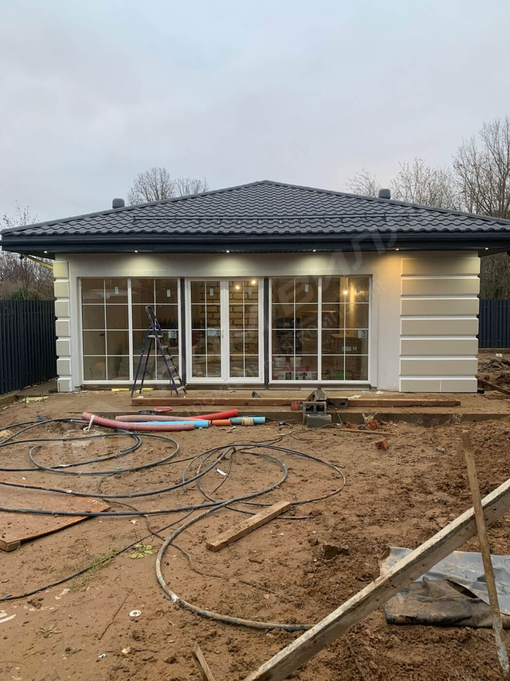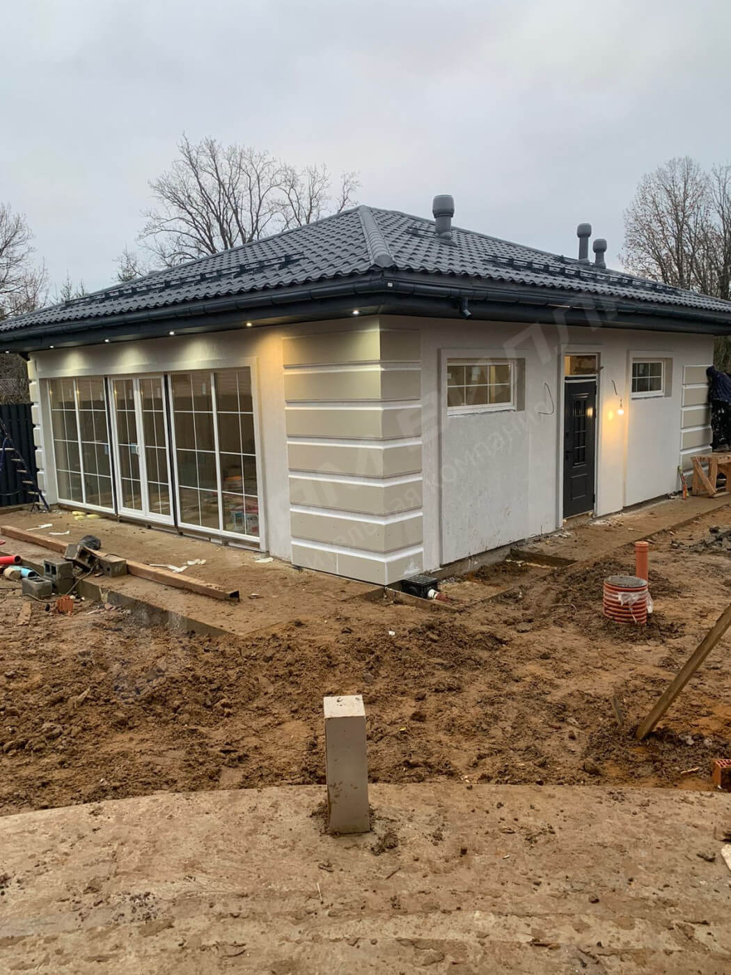 Гостевой одноэтажный дом в такой же архитектуре, которой выполнен основной дом