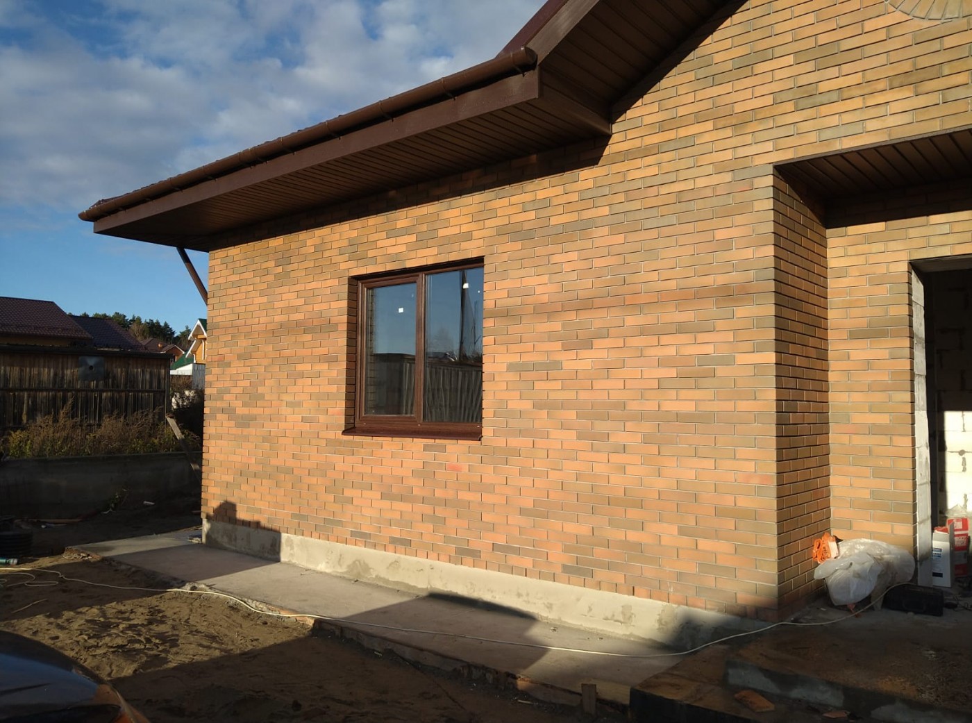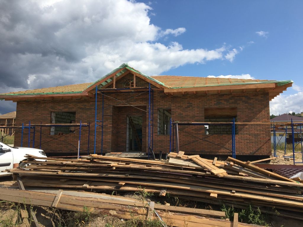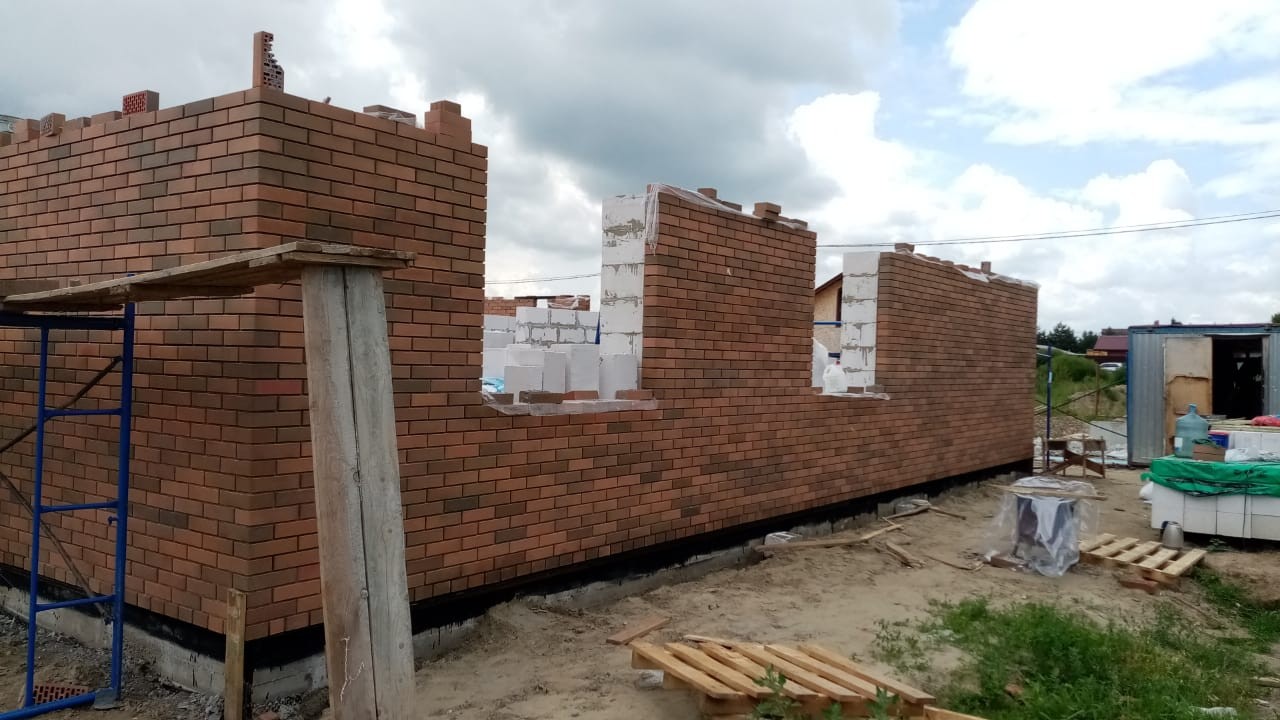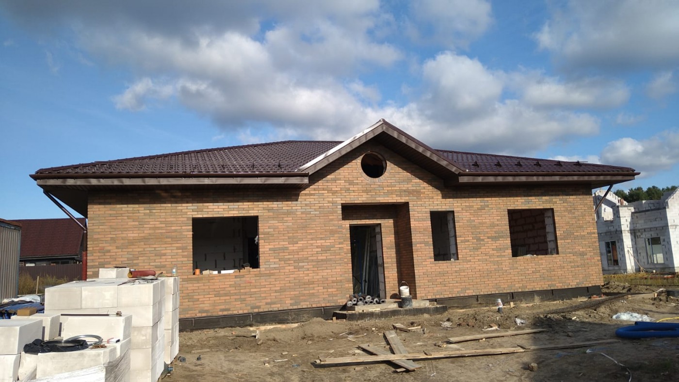 Строительство одноэтажного дома с облицовкой кирпичом в Раменском районе - поселок Малиновка