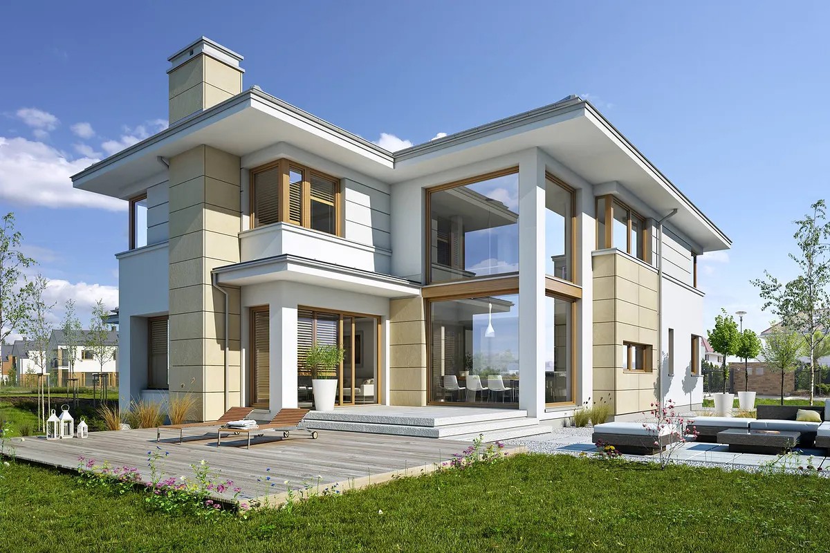 Двухэтажный дом из газобетона 17 на 17 с гаражом значительно сократит расходы на строительство за счет минимизации размера фундамента и меньшей площади крыши. К тому же, дом на два этажа считается более энергоэффективным вариантом, особенно в холодное время года.