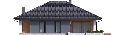 Яркий фасад с деревянными элементами и серыми панелями отлично сочетается с шатровой крышей, покрытой серой металлочерепицей. В задней части дома есть просторная терраса, где вы можете провести время на свежем воздухе со своими близкими.
