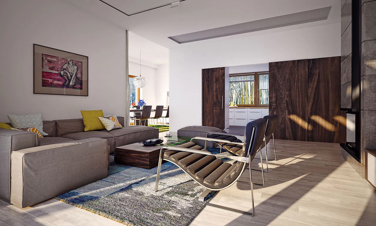 Дизайн дома Брисбен - интересное предложение для тех, кто владеет земельным участком средней ширины. Дом имеет L-образный корпус, что делает его необычным. Дом был спроектирован с учетом отдельно стоящей застройки.