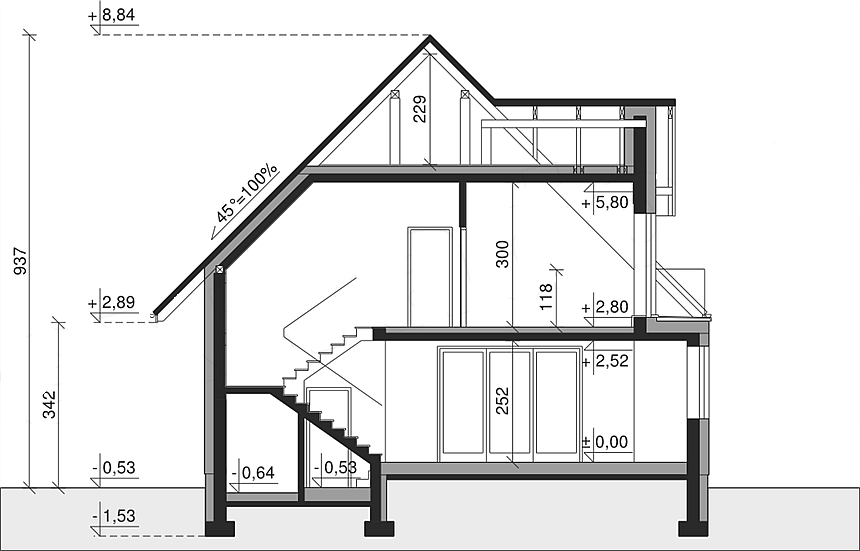 1 этаж 1 прихожая 3,73 м² 2 холл 7,33 м² 3 комната 8,62 м² 4 санузел 4,44 м² 5 хоз. помещение 2,9 м² 6 котельная 10.09 м² 7 гостиная 34,02 м² 8 кухня 12 м² 9 кладовая 1,15 м² Всего 84,28 м² |