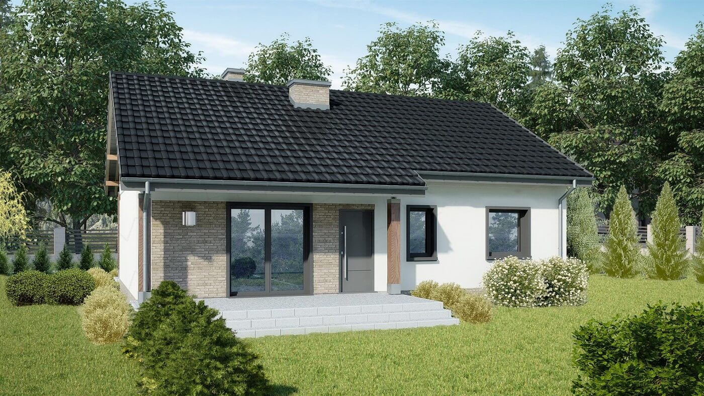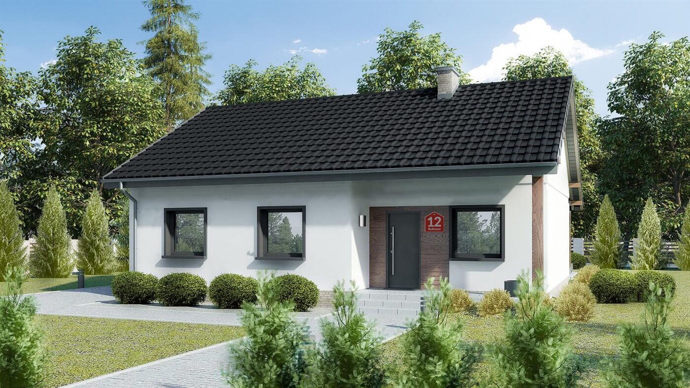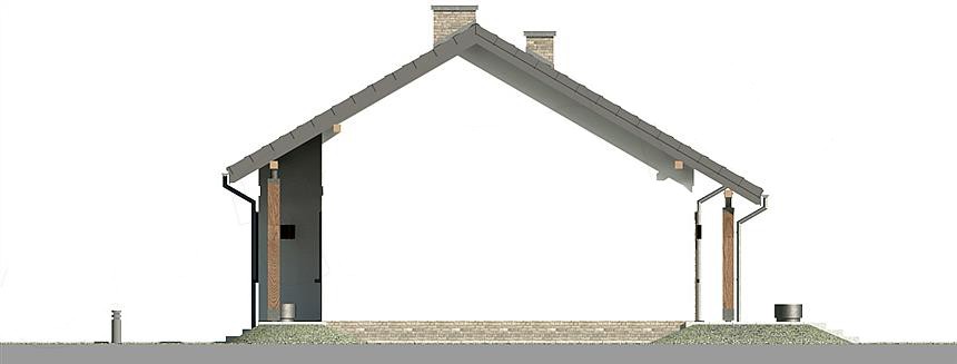 Небольшой одноэтажный дом 12 на 9. Минимализм по количеству несущих стен делает дом дешевым и быстрым в строительстве. Открытая дневная зона состоит из солнечной комнаты с камином и эргономичной кухни, объединенной со столовой. Раздвижная дверь соединяет ее с зеленой сферой сада. Гостиный уголок дома состоит из трех спален и полностью оборудованной ванной комнаты. Котельная была спроектирована для размещения прачечной и была многофункциональным местом, где можно хранить садовую мебель (наружные двери). Сплошной потолок позволяет обустроить большой чердак по индивидуальному усмотрению. Интересное решение для узких участков или для террасных домов. Отличное предложение для семьи из 4-5 человек.