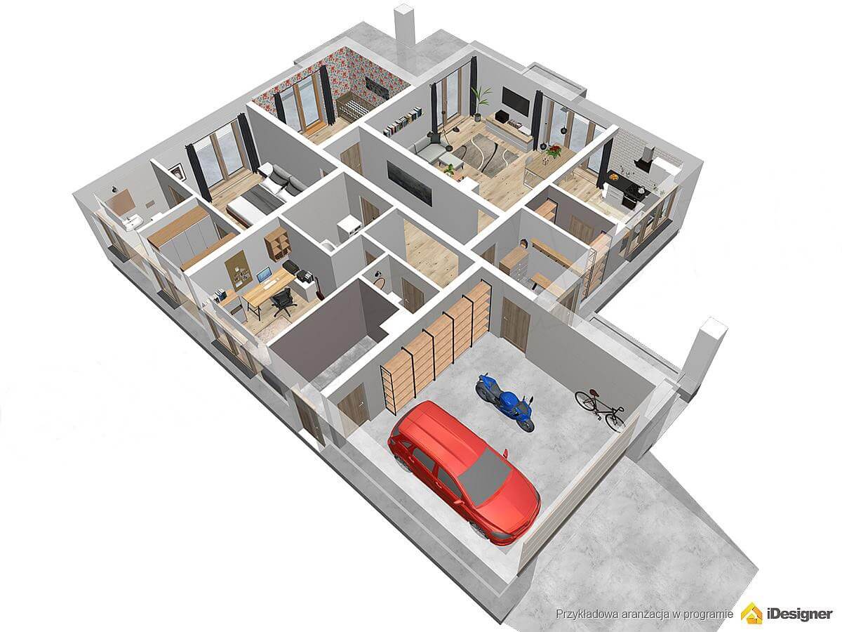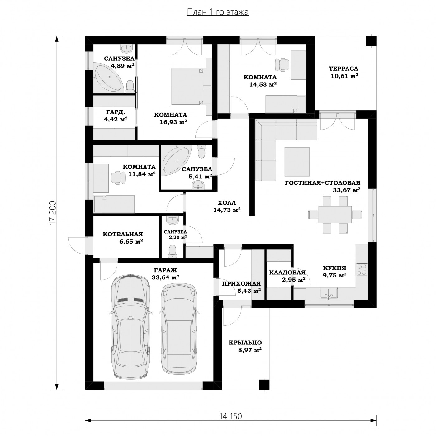Дизайн проекта также включает в себя гараж на две машины. Попасть в него можно изнутри дома, что, согласитесь, актуально, когда на улице минусовая температура ❄