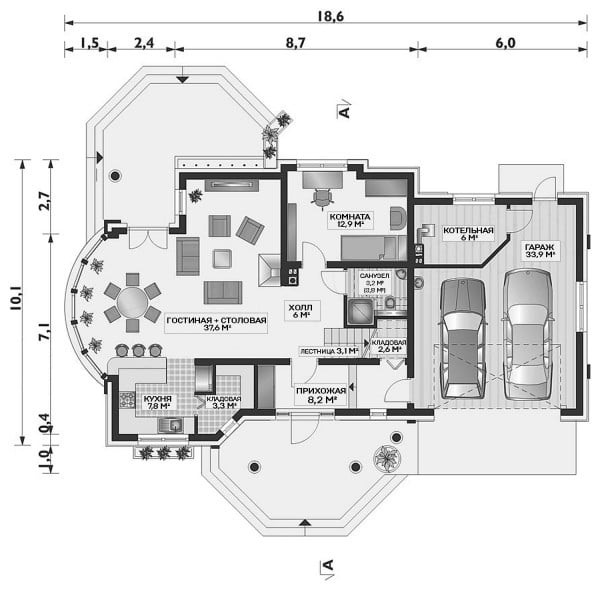 План дома "Дрезден" газобетон - отличное решение для людей со средним заговором. В доме есть L-образный блок, который позволяет легко делить на зоны. Остекление, предусмотренное в эркере, придаст интерьеру больше простора. Проект относится к категории домов с гребнем и размерами 18 на 10, расположенным параллельно дороге, что часто указывается в плане пространственного развития. Дом был создан для отдельно стоящих зданий. Проект включает в себя двойной гараж на линии здания. Конструкция здания покрыта двускатной крышей, что делает его дешевым и простым решением. Проект Heliodor - кладка - газобетон представляет собой одноэтажный дом с мансардой, что означает, что дневная и ночная зоны четко отделены друг от друга. Сердце дома - просторная дневная зона, что способствует проведению времени вместе с вашими близкими. Дизайн включает в себя закрытую кухню, благодаря которой запахи приготовленных ароматических блюд не проникают в зону отдыха. На кухне есть стол, благодаря которому он приобретает функциональность. Кроме того, предоставленная кладовая является идеальным местом для хранения консервов и продуктов питания. Дневную зону также создает просторная гостиная со столовой, благодаря которой члены домохозяйства могут объединиться в одном месте. Камин, расположенный в гостиной, не только выглядит великолепно, но и обеспечивает приятное тепло в прохладные дни. Дизайн включает в себя одну ванную комнату на первом этаже и две на чердаке. Пять спален идеально подходят для семьи из 5-7 человек. Пространство также может быть использовано в качестве комнаты для гостей или учебы. Терраса у дома хороша для проведения времени на свежем воздухе. Здание было спроектировано по кирпичной технологии. "Дрезден" - отличное предложение для инвесторов, ищущих традиционный дом, благодаря которому он идеально подойдет к любому ландшафту.