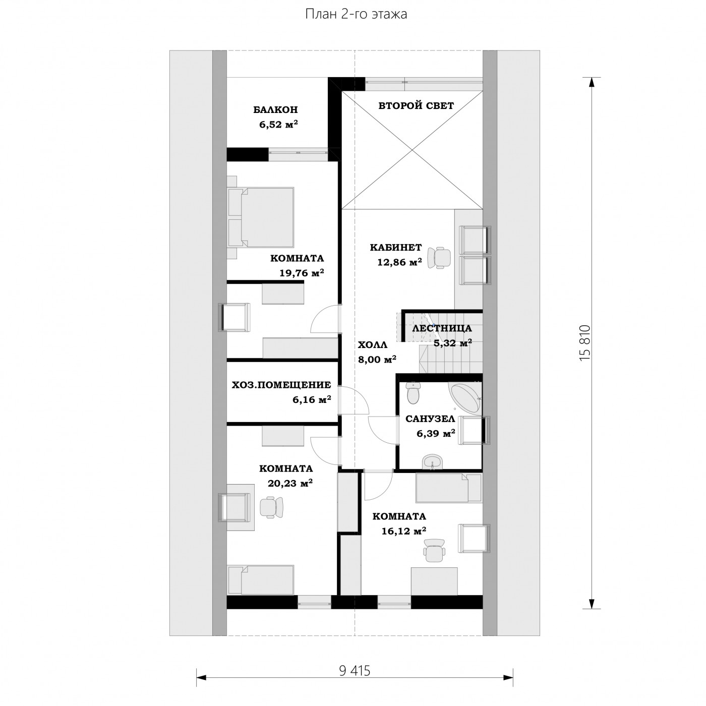2 этаж 1 холл 7,9 м² 2 кабинет 12,3 м² 3 комната 19,1 м² 4 хоз.помещение 5,6 м² 5 комната 19,8 м² 6 комната 15,3 м² 7 санузел 6,2 м² Всего 86,2 м² |