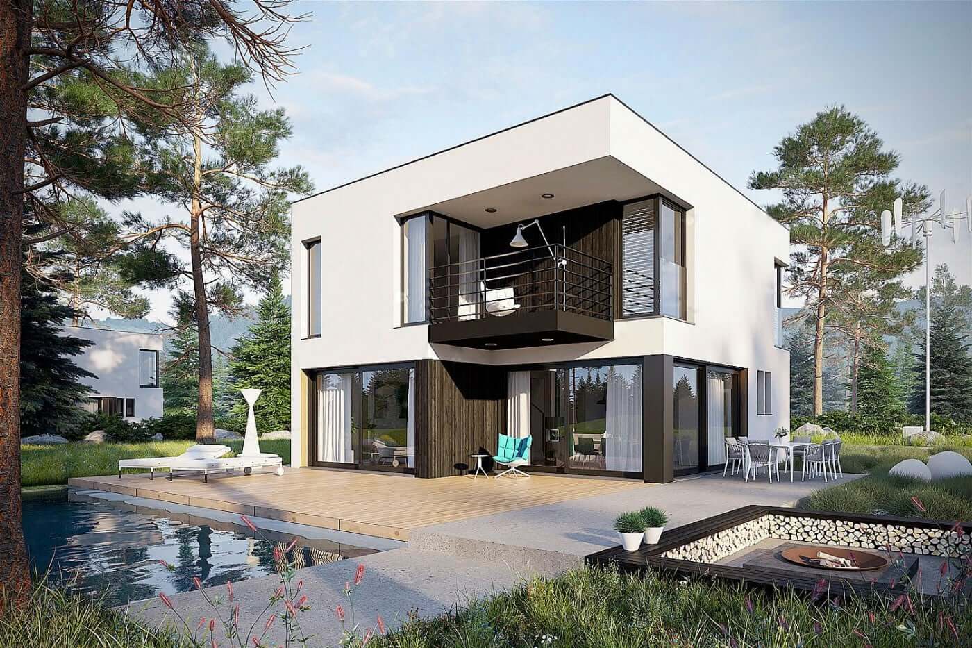 Этот проект стал очень популярен ввиду своих особенностей. Компактный размер позволяет построить его на небольших участках и легко адаптировать под различные его формы и расположить наилучшим образом. Этот проект полюбился многим за счет его внешнего стиля отсылающего нас к лучшим традициям модернизма.