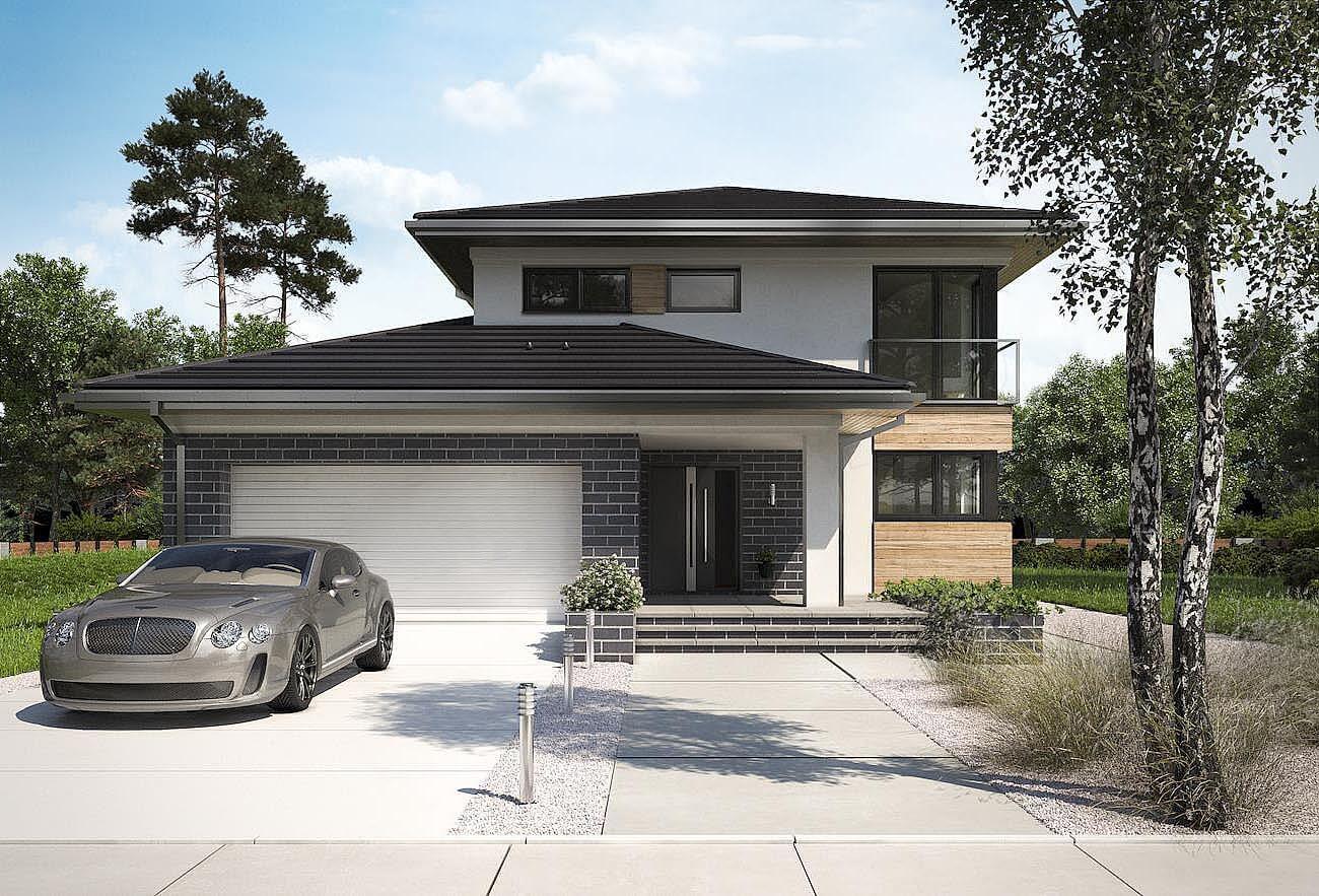 Дизайн дома "Оклахома", уникальный в предложении Рам Вилла, является двухэтажным зданием, с гаражом, и имеет современный, городской характер. Он предлагает большую, удобную квартиру с не очень крутыми шатровыми крышами над планом, построенным из перекрывающихся прямоугольников. Из него выходит прямоугольное двухэтажное здание, окруженное с одной стороны более низким зданием, выступающим вперед. Здесь находится гараж, котельная, а сзади - кабинет у гостиной. Кроме того, часть его крыши, поддерживаемая на шесте, покрыта входной террасой. За глубокой аркадой в алькове, холлом с выходом в гараж, а за холлом - просторная гостиная. Небольшой кабинет примыкает к саду, столовой и кухне с кладовой с фасада. Частично открытая лестница с кладовой ведет наверх в четыре комнаты. Существует также прачечная и набор из двух ванных комнат, одна из которых относится только к главной спальне. Большое остекление балкона, заключенное в вертикальные полосы на фасадах, угловые окна в дизайне дома «Оклахома» и садовые подрезанные террасы смягчают строгость блока. Общие габариты объекта чуть белее - 12 х 15 м.