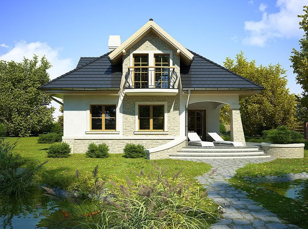 В отличие от своего собрата, дизайн дома имеет меньшую площадь и размеры, однако здесь нет гаража. План дома "Сакраменто" - интересное предложение для людей, желающих построить дом 10 на 12 с мансардой из газобетонна или пеноблоков. В этой конструкции гребень расположен перпендикулярно дороге, что часто определяется в строительных условиях. Предназначен для отдельно стоящих зданий. Это также интересное предложение для людей, которые ищут дом с крышей-конвертом, которая характеризуется высокой устойчивостью к неблагоприятным погодным условиям. Проект "Сакраменто" представляет собой одноэтажный дом с мансардой, благодаря которому мы можем наслаждаться большой площадью, даже на относительно небольшом участке. Дизайн дома характеризуется просторной дневной зоной. Он создан, среди прочего, функциональной кухней, которая порадует каждого инвестора. Сторонники практических решений, несомненно, будут рады, что есть также место для кладовой. Интересным элементом, безусловно, является камин, расположенный в гостиной, который придаст интерьеру неповторимую атмосферу. Дизайн включает в себя туалет на первом этаже и ванную комнату на верхнем этаже. Четыре спальни идеально подходят для семьи из 4-6 человек. Пространство также может быть использовано в качестве комнаты для гостей или учебы. Кроме того, в доме также есть подсобное помещение, которое вы можете использовать в соответствии с вашими потребностями. Семейные посиделки в солнечные дни с террасой возле дома. Проект выполнен по кирпичной технологии, благодаря чему дом сохраняет приятную прохладу в жаркую погоду.