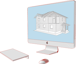 Эскизный проект дома, необходимый для получения разрешения строительства, представляет собой набор чертежей, состоящий из планов, фасадов, разрезов и привязки к участку. Мы бесплатно предоставляем такой проект для заказчика.