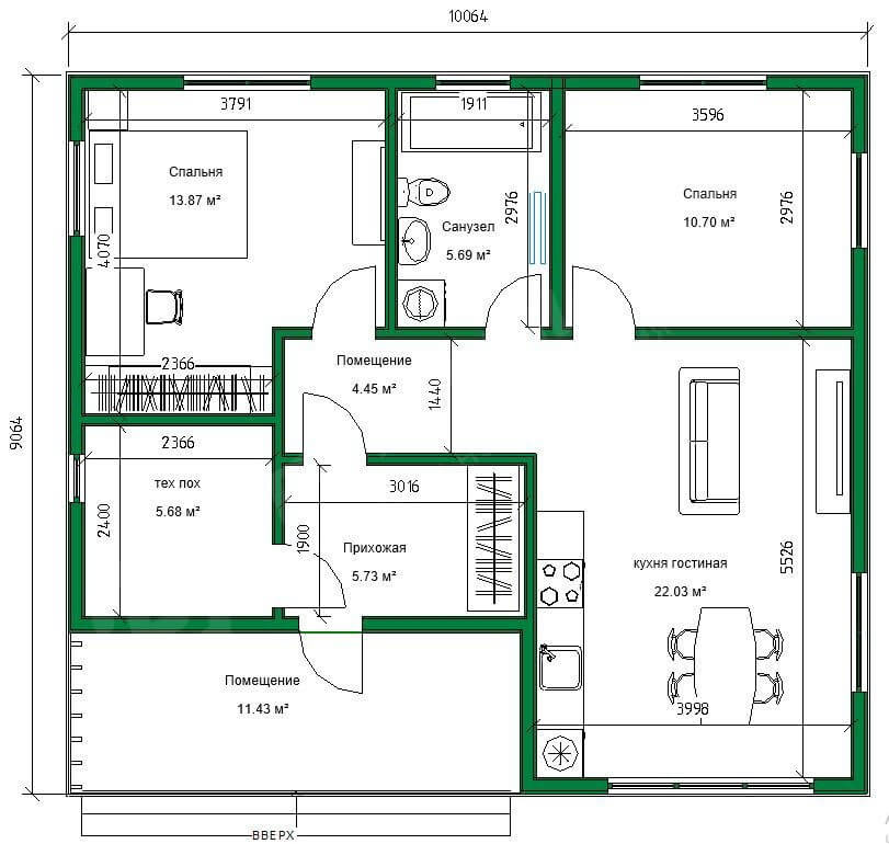 • Отделка стен планкеном или скандинавским профилем хвойных пород обработанным влагозащитой.