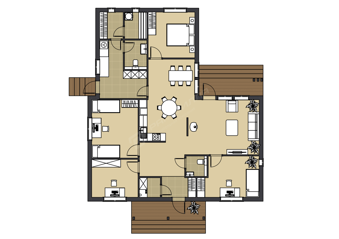 Мы - компания полного цикла. Мы берем проект от идеи, до полного воплощения на участке. За нами не приходится доделывать работу. Например крышу мы заканчиваем полностью (подшиваем софитами, устанавливаем снегозадержатели, водосточную систему).